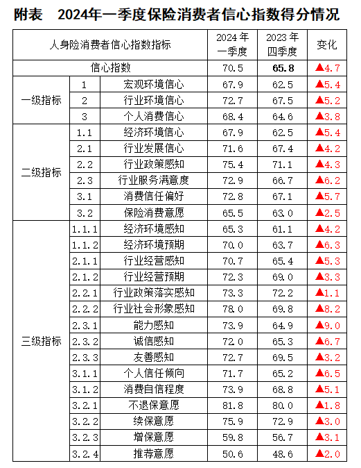 【指數(shù)成果】2024年一季度中國保險(xiǎn)消費(fèi)者信心指數(shù)70.9