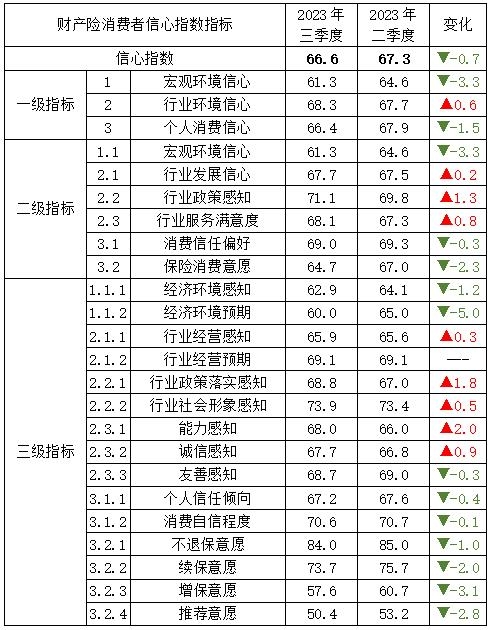 【指數成果】2023年三季度中國保險消費者信心指數66.9